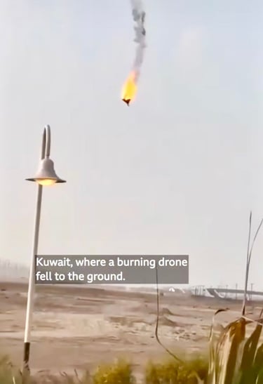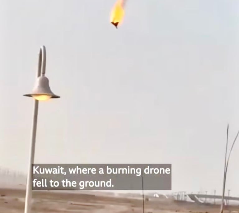 Image: A burning drone fell to the ground in Kuwait