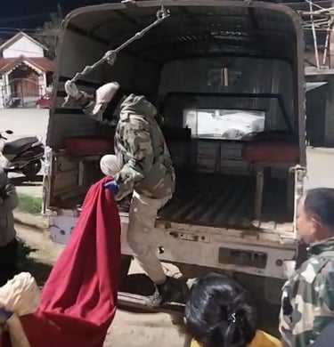 Tronglaobi village lies in the peripheral belt of Bishnupur district close to the elevated hill areas of Churachandpur district. The locality has long been considered vulnerable because of its proximity to hill positions reportedly occupied by armed Kuki groups. Residents reported that rockets fired from surrounding hill slopes have landed inside the village, indicating that the firing positions are located at a distance of more than three kilometres.