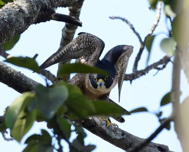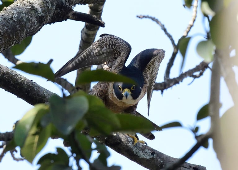 Image: Peregrine Falcon perched high within Kangla’s trees. Among the fastest birds in the world, its occasional presence in urban landscapes reflects the adaptability of apex predators where prey and safe roosting sites remain available.