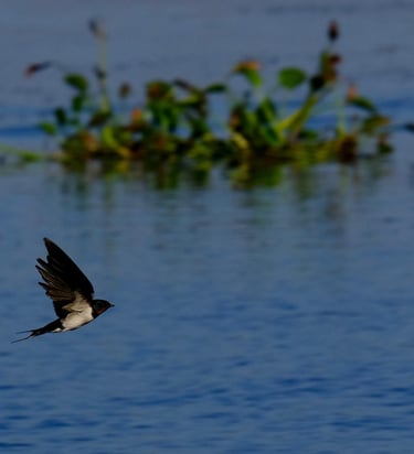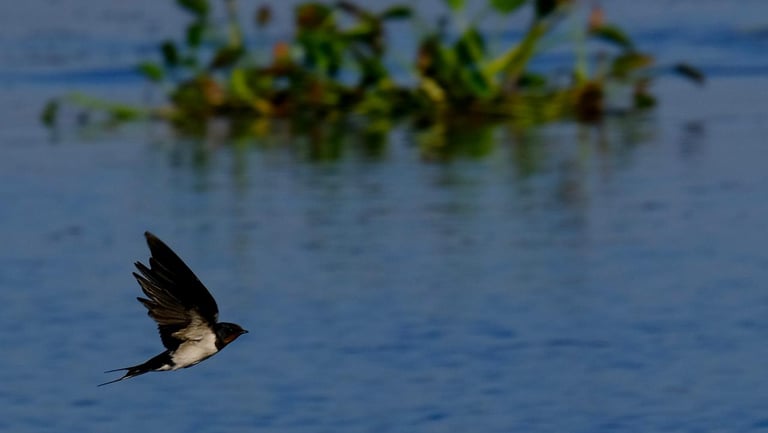 Image: A swallow glides gracefully over the waters of Loktak Lake