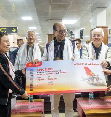 Image: C.M. Khemchand along with Inner Manipur M.P. Dr. Bimol Akoijam launches Spicejet flight services