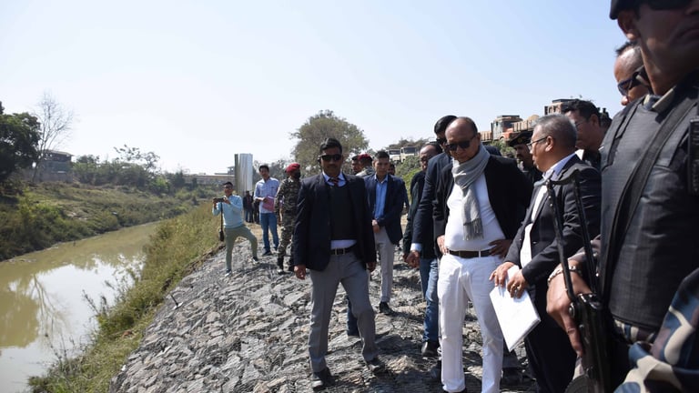 Image: C.M. inspects embankment work taken up along the Imphal River